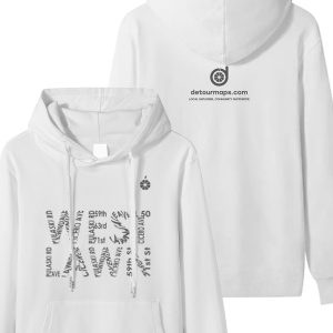 This design pays homage to the neighborhood through a typographic composition, highlighting avenue names as symbols of community and daily life. Every piece is custom made by detour22, the creative soul of Detour Maps, ensuring your style is rooted in neighborhood authenticity. Please note that because our designs are individually crafted, they have certain limitations; actual colors and textures may vary slightly from digital representations