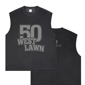 This unisex reverse washed tank top features a unique graphic connecting West Lawn to the heart of Illinois, bridging local pride with regional identity.