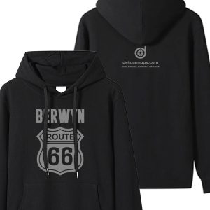 This design pays tribute to the historic Route 66, one of the most iconic paths connecting local stories and diverse cultures along the way. It represents the journey, the commerce, and the vibrant local life that thrives on this legendary route. Every piece is custom made by detour22, the creative soul of Detour Maps, ensuring your style is rooted in authentic neighborhood history.