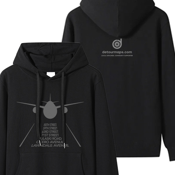 This design merges the iconic airplane symbol with the actual traces and names of West Lawn’s streets, creating a visual map of neighborhood identity. Every item is custom made by detour22, the creative soul of Detour Maps, ensuring your style is rooted in authentic neighborhood stories. Please be aware that because our designs are individually crafted, they have certain limitations; actual colors and appearances may vary slightly from digital representations.