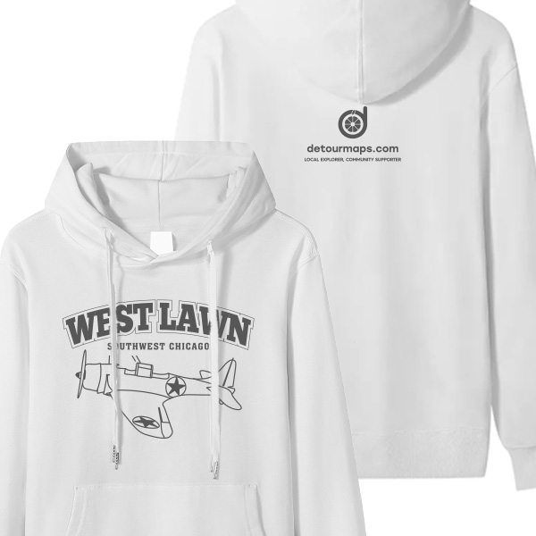 Fly with neighborhood pride. This design highlights the airplane as a defining symbol of West Lawn, capturing the movement and visual identity that make our community unique. Presented with a clean and solid graphic, it reinforces a local icon that neighbors recognize and value. Every piece is custom made by detour22, the creative soul of Detour Maps, ensuring your style is rooted in authentic neighborhood stories. Please note that because our designs are individually crafted, they have certain limitations; actual colors, textures, and appearances may vary slightly from digital representations. Built for your daily “cotidiarias,” this hoodie honors our roots that began on 22nd Street in 2007, serving as a safe path toward neighborhood memories. We aren’t Big Tech; we are Big Barrio. Rep your block. Discover simplicity.