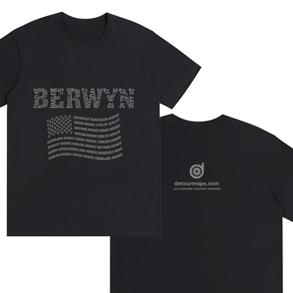 A wearable map of our community. This design constructs the name “Berwyn” using its primary street names, transforming the urban layout into bold typography.