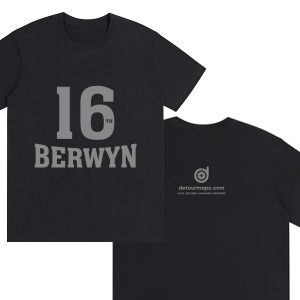 A wearable map of our community. This design constructs the name “Berwyn” using its primary street names, transforming the urban layout into bold typography.