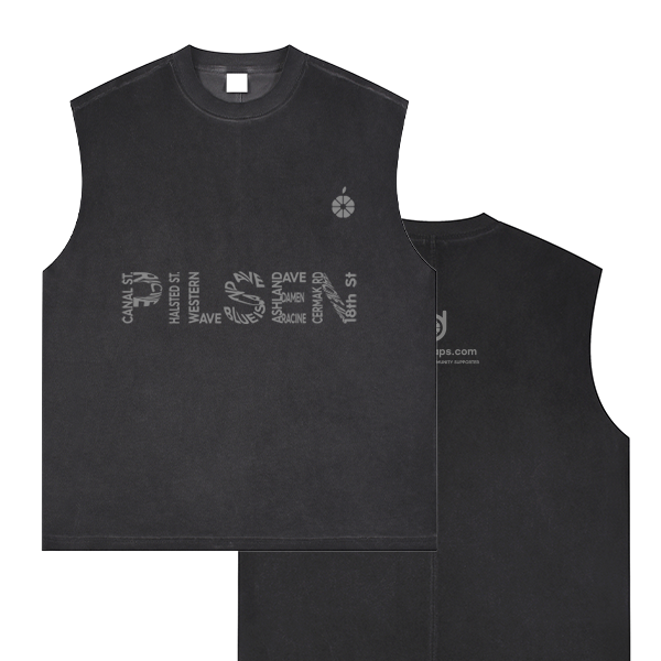 This unisex reverse washed tank top features bold typography inspired by urban signage to represent the iconic streets of Pilsen. By turning street names into a graphic symbol of identity and belonging, this design reflects the unique rhythm of your daily “cotidiarias”.