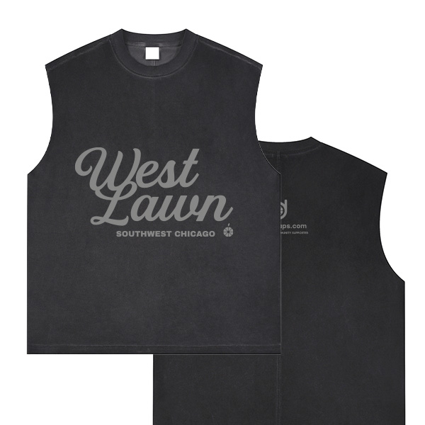 This unisex reverse washed tank top is inspired by West Lawn’s unique location in Southwest Chicago, blending local identity with a bold urban aesthetic.